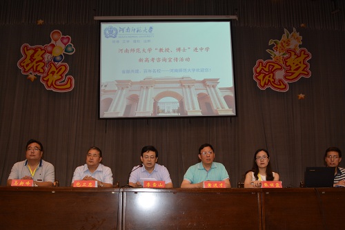 李雪山向参会的家长、师生们介绍了河南师大近年高速发展取得的标志性成绩,他指出,为适应高招政策的新变化,变改革压力为创新动力,争取优质生源,同时服务省内考生报考志愿,我校组织20多支宣讲队,从高考考试结束开始奔赴全省110所省级示范性高中,开展“教授、博士进中学”新高考咨询宣传活动。帮助河南的优秀考生,熟悉和了解河南省最新的高考改革政策、掌握志愿填报的技巧、不要在志愿填报上吃亏,考取自己满意的大学。