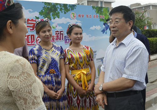 上午,校长常俊标一行来到校园西区、东区各学院迎新点,仔细询问新生录取数量和报到情况,认真了解困难学生的帮扶情况。常俊标十分关注各学院迎新工作的开展形式和创新思路。他对外国语学院推出的“心愿墙”、物理与材料科学学院的“新生访谈间”、多部门组织的“师大迎新直播间”、社会事业学院的“党员服务站”、各学院专门设立的家长休息区等活动表示肯定。在新媒体协会和《河南师大报》的迎新点,常俊标对学校官方微博微信的工作表示赞赏,并叮嘱大家要办好新媒体。每到一处迎新点,他都提醒工作人员,迎新工作要做得细致具体,关注学生需求,加强学校与学生家长的联系,让家长放心把孩子交给学校。