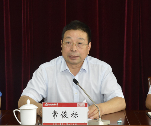 校长常俊标发表讲话。他回顾了2018年上半年学校在党建和思想政治工作、人才培养、学科和学位点建设、科学研究、师资队伍建设、国际合作与交流、内部管理与服务等方面取得的新进展,分析了高等教育发展形势、学校面临的发展机遇以及存在的问题,安排部署了2018年下半年的重点工作。