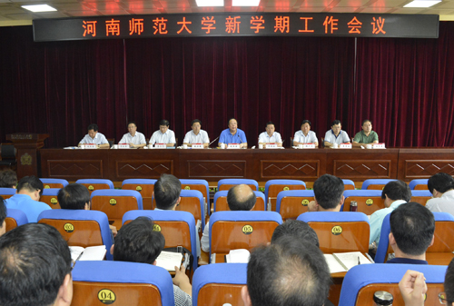 校党委书记赵国祥对做好2018年下半年的重点工作提出要求:一要认真抓好第十二次党代会精神的贯彻落实。各基层党组织、各单位要加强学习领会,抓好任务分解,切实把党代会精神转化为深化改革、推动发展的具体方案和举措。二要严格抓实中央巡视河南反馈意见整改任务。各单位要提升政治站位,强化问题导向,严格履行整改主体责任,结合实际着力解决突出问题,确保巡视整改落到实处。三要牢牢抓住教师教育新形势下的发展机遇,着力在学深弄懂、统一思想、加强教师教育上下功夫,将教师教育的“特色”转化成“优势”,将“优势”转化成“强势”,努力建设一流师范大学。四要以党的建设高质量引领学校事业发展。要旗帜鲜明讲政治,牢牢把握正确办学方向;要脚踏实地抓发展,持续提升学校核心竞争力;要驰而不息强作风,为事业健康发展提供坚实保障。