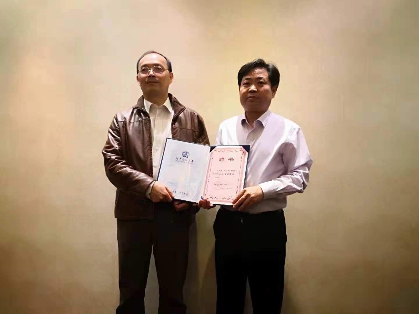 党委常委、副校长刘玉芳为高式昌教授颁发了伟德官网下载苹果版兼职教授聘书。