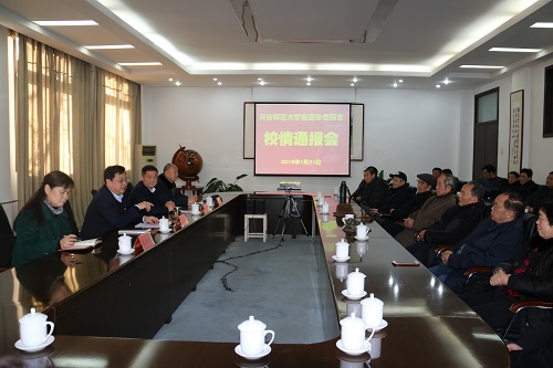 1月21日下午,我校在勤政楼第一会议室举行2018年离退休老同志校情通报会。校党委副书记、校工会主席臧振春出席通报会并讲话。离退休老校领导、离休干部、专家、教授代表等30多位老同志参加了通报会。离退休党委书记郑其腾主持会议。