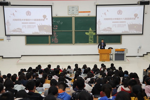 10月16日晚,由我校文明委主办,商学院承办的第48期道德讲堂在东区综合楼127教室举行。商学院相关负责人、教师代表和2019级同学近400人参加活动。