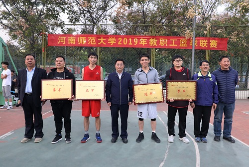 10月18日下午,我校2019年教职工篮球联赛随着冠亚军的精彩角逐,在西区塑胶篮球场圆满落幕。党委副书记、工会主席臧振春到场观看了比赛并为获奖单位颁发奖牌。
