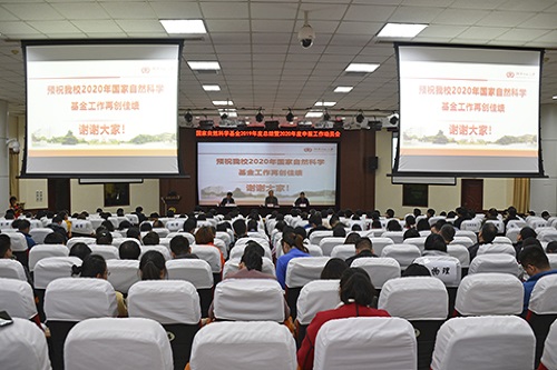 常俊标指出,国家自然科学基金是衡量一所大学科研实力最重要的指标之一,其重要性不言而喻。在国家自然科学基金申报工作中,学院院长为第一责任人,要高度重视,积极引进高层次人才,充分挖掘教师科研潜力,大幅提升教师科技创新能力和水平;要精准分析,全面掌握业务教师科研情况,制订个性化指导方案,开展有针对性的“一对一”指导;要高度重视学术交流,加大学术交流资金投入,提升学术交流层次,扩大学术交流范围。他希望广大教师要不忘初心、牢记使命,充分发扬埋头苦干、勇于探索的创新精神,争取2020年我校国家自然科学基金立项数再创辉煌。