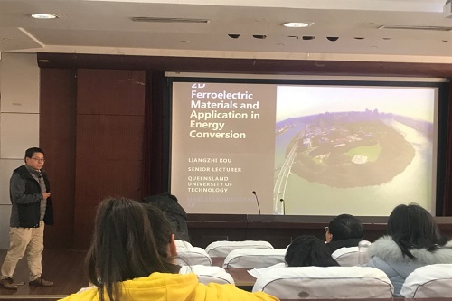 12月31日上午,应物理学院邀请,昆士兰科技大学寇良志研究员到我校访问并做题目为“2D ferroic materials and the application in energy conversion”的学术报告。报告会在物理南楼二楼报告厅举行。学院相关专业教师、研究生、本科生共50余人参加了报告会。