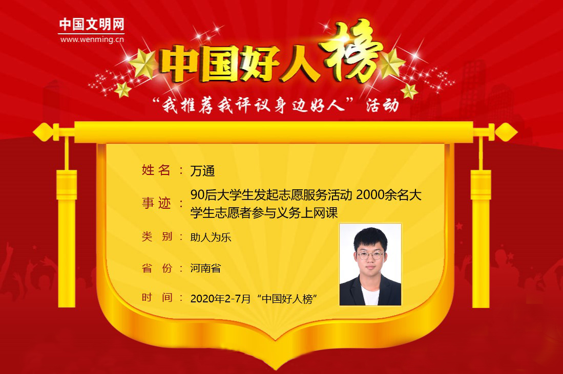 万通先进事迹链接: 《90后大学生发起志愿服务活动 2000余名大学生志愿者参与义务上网课》