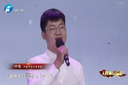 10月21日晚,由中共河南省委宣传部主办,河南广播电视台卫星频道承办的“出彩河南人”楷模发布厅特别节目《人民不会忘记》在河南卫视播出。河南省卫健委主任阚全程,河南省教育厅党组书记、厅长郑邦山,中国工程院院士、河南农业大学校长张改平,国务院发展研究中心(中国智库)专家、郑州大学教授、博士生导师王东虓出席节目。我校学子万通作为其中的志愿者代表参加了节目演出。