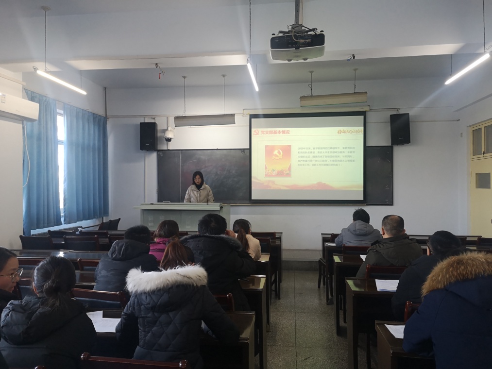她要求在新的一年里,各党支部还要重点抓好以下工作:一是进一步加强理论学习,创新学习方式,多开展有吸引力、感染力的学习活动,激发党员学习主动性。二是严格落实“三会一课”制度,理论结合实践,实践结合专业,创新方式方法,增强组织生活活力。三是强化责任意识,发挥好党员的先锋模范作用和党支部的战斗堡垒作用,以提升党支部建设助力学院高质量发展。四是提高政治站位,毫不松懈地抓好疫情防控常态化工作,不折不扣执行上级的各项决策部署。