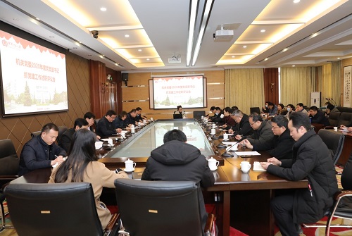 为深入学习贯彻习近平新时代中国特色社会主义思想,全面落实新时代党的建设总要求,推动全面从严治党向纵深发展、向基层延伸,压紧压实党支部书记抓党建政治责任,1月13日下午,机关党委在勤政楼第三会议室召开2020年度党支部书记抓党建工作述职评议考核及“五星级党支部”考评工作会。机关党委委员、各支部书记、支部委员、党员代表参加会议。会议由机关党委副书记兼纪委书记高飞主持。