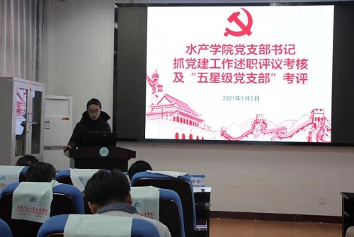 为进一步落实《中国共产党支部工作条例(试行)》,不断强化以党的建设为根本的基层基础工作,强化基层党支部书记抓党建工作第一责任人的意识,1月5日下午,水产学院党委在学院党建活动室召开2020年度党支部书记抓党建工作述职评议及“五星级党支部”考评工作会。学院处级领导干部、党委委员、支部书记、支委和师生党员代表参加会议。会议由学院党委副书记张震主持。