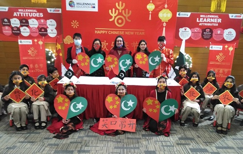 2月16日,我校承办的巴基斯坦千禧孔子课堂 “欢乐春节暨中巴建交70周年庆祝活动”在巴基斯坦根基千禧学校“同一世界”校区举行。中国驻巴基斯坦大使农融、文化参赞兼巴基斯坦中国文化中心主任张和清以视频连线方式应邀出席活动,与千禧孔子课堂师生们在“云”端一起欢度新春佳节、共叙中巴友谊。