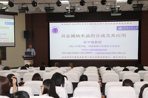 徐甲强以“双金属纳米晶的制备及其在气体传感器上的应用”为题,向师生介绍了双金属纳米晶作为新型的气敏材料的特点以及在微结构、形貌、异质结构等多方面的协同增敏作用;并介绍了气体传感器的的研究现状和发展趋势;最后介绍了双金属纳米晶在气体传感器上的应用。