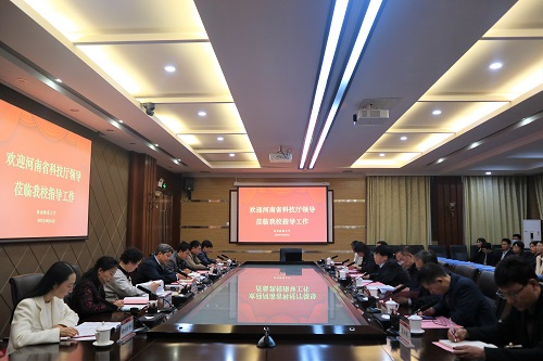 郭海明致欢迎辞,代表学校对科技厅领导、验收组、专家组一行来现场验收和指导工作表示欢迎,介绍了学校“十三五”时期在学科建设、人才培养、成果转化、社会服务、国际合作、创新引智等方面取得的突破和成绩,对学校“十四五”规划的奋斗目标及应对国内外科技创新环境复杂变化的应对举措作了诠释。他表示,此次工作室的验收必将对学校创新引智工作和国际科研合作的发展起到良好的促进和推动作用,衷心希望各位领导及专家对学校高层次人才团队建设提出宝贵的建议。