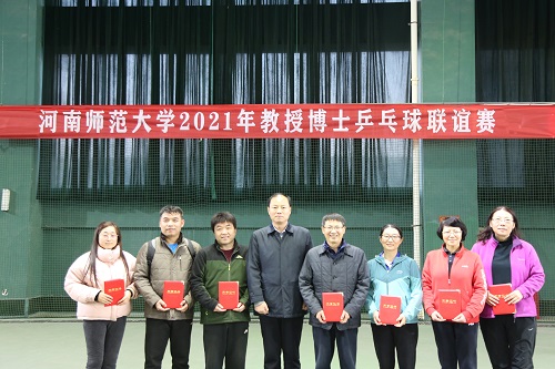 12月5日,由校工会主办,校乒乓球协会、体育学院协办的教授博士乒乓球联谊赛在西校区综合训练馆落下帷幕,校党委副书记、工会主席梅宪宾出席活动并为优胜个人颁奖。
