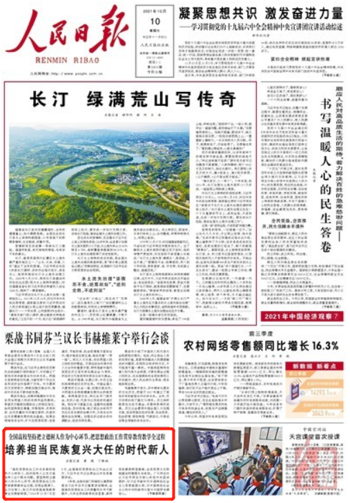 今年是全国高校思想政治工作会议召开五周年。五年来,我校加快构建思想政治工作体系,不断推动思想政治工作高质量发展。12月10日,《人民日报》头版刊发《培养担当民族复兴大任的时代新人》,其中报道了我校水产学院2018级本科生宿迁生产实习分队流动党支部开展的主题党日活动。现将文章转载如下: