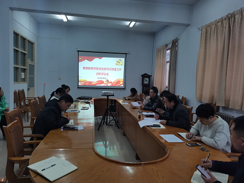 会上,田月红传达校组织部《关于开展2021年度党支部书记抓党建工作述职评议考核及“五星级党支部”考评工作通知》的要求。学院8位党支部书记围绕履行党支部党建责任情况、党支部建设情况、基层党支部战斗堡垒作用发挥情况、存在问题及改进措施等方面进行了详细汇报。汇报结束后,各基层党支部书记进行自评,与会人员结合实际工作情况进行讨论和交流,并围绕班子建设、党员队伍、制度建设、作用发挥、群众满意五个方面,对基层党支部书记抓党建工作进行现场测评。
