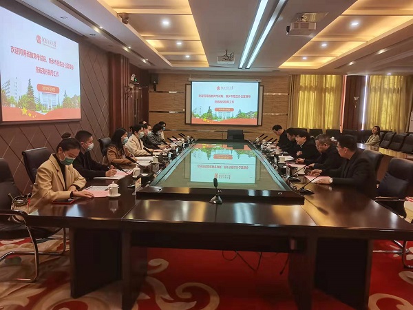 郭海明向考察组介绍了我校发展近况、四(六)级考试笔试情况及设立口语考点的必要性。郭海明指出,作为笔试考点,我校设有306个标准化考场,考务工作规范,多年来无考试事故发生。为响应考生参加口语考试的迫切需求,我校投入专项资金申请设立全国大学英语四(六)级口语考试考点,这是落实学生中心、支持学生发展的现实需要。会上,外国语学院汇报了我校全国大学英语四(六)级口语考试考点建设的前期准备工作。省教育考试院和新乡市招生办公室对我校全国大学英语四(六)级口语考试考点的申报准备工作给予了充分肯定。