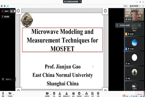 应电子与电气工程学院邀请,华东师范大学高建军教授(博士生导师)于4月9日在腾讯会议平台上作了题为《MICROWAVE MODELING AND MEASUREMENT FOR DEEP-SUBMICROMETER MOSFETs》的专题学术讲座。学院相关负责人、师生代表100余人参加讲座。讲座由学院院长王长清主持。