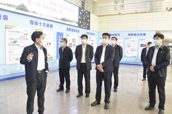4月21日上午,省委教育工委副书记,省教育厅党组书记、厅长宋争辉一行莅临我校调研指导“双一流”创建工作。调研汇报会在勤政楼第三会议室召开。新乡市委副书记、市长、党组书记魏建平,新乡市委常委、统战部部长、副市长王占波,全体校领导出席会议,省教育厅、新乡市有关部门及我校相关部门负责同志参加会议。会议由校党委副书记陈广文主持。