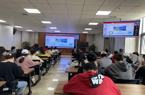 周林燕以“罗非鱼生殖调控和基因编辑育种研究”为题,从实验室建设、发展与现状等几个方面介绍了其所在单位“西南大学淡水鱼类资源与生殖发育教育部重点实验室”,希望同学们踊跃报考西南大学生命科学学院硕士研究生。周林燕介绍了其所在团队在罗非鱼育种方面的研究进展,并着重讲解了罗非鱼性别决定与分化、类固醇激素合成、生长等方面的相关成果。