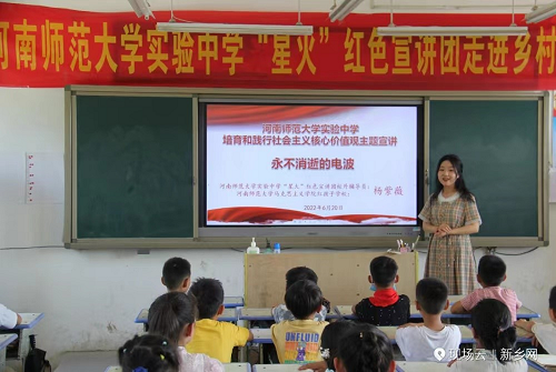 6月20日上午,伟德官网下载苹果版马克思主义学院“红孩子”学校联合伟德官网下载苹果版实验中学“星火”红色宣讲团走进新乡市封丘县黄德镇乡村少年宫。伟德官网下载苹果版实验中学聘请“红孩子”学校宣讲团成员徐红艳、杨紫薇为校外辅导员,共同为黄德镇小学送去了生动的红色故事课。