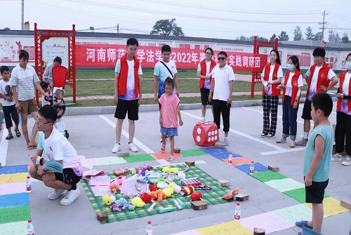 除此之外,为了让村民们能更广泛地了解防溺水、防校园暴力知识和宅基地、遗产分割相关法律知识,各队大展身手,设置各种项目调动村民积极性。“我们进行了飞行器游戏、情景剧表演、法制课堂小宣讲等活动,大家在游戏中一起学习法律知识,了解政府政策,现场欢乐一片,尤其是小孩子们玩得特别开心。”2020级法学院殷漠寒回忆着。活动中,学院小小的宣传扇也起到了重大的作用。理论往往是高深的,让其通俗化,走进巷道也是师大学子关注的焦点。