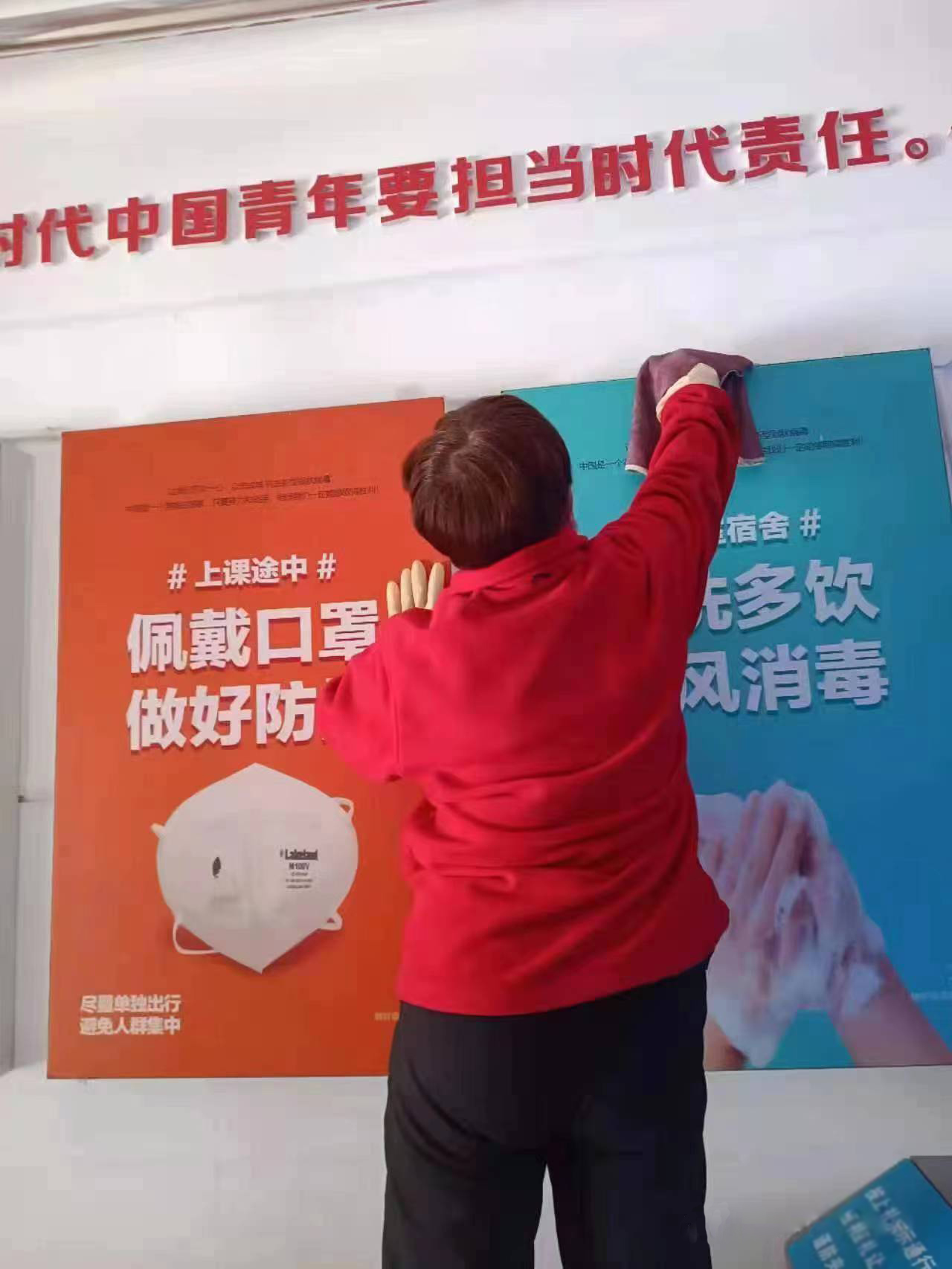 后勤工作是疫情之下最温暖的一道保障,宿管人员、保洁人员……舍小家为大家,奔赴在疫情防控最基层。东区13号宿舍楼的韩瑞娟便是其中的一员,卫生打扫、物品消杀、督促学生扫场所码等,这是她的日常工作,“其实我家里还有孩子,说不担心是假的,但关键时刻,我能做的就是认真完成好自己的本职工作,为学校疫情防控贡献自己的一点力量。”