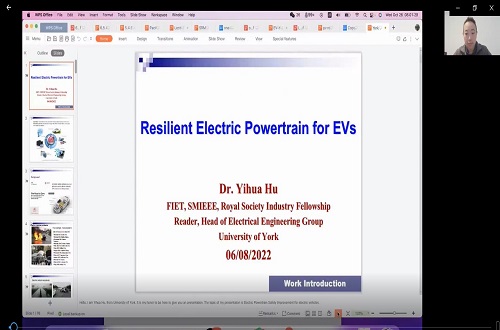 应我校电子与电气工程学院邀请,约克大学胡义华准教授(博导)于10月26日下午15点在腾讯会议平台上作了题为《Resilient Electric Powertrain for EVs》的专题学术讲座。学院负责人、师生代表100余人参加讲座。讲座由院长王长清主持。
