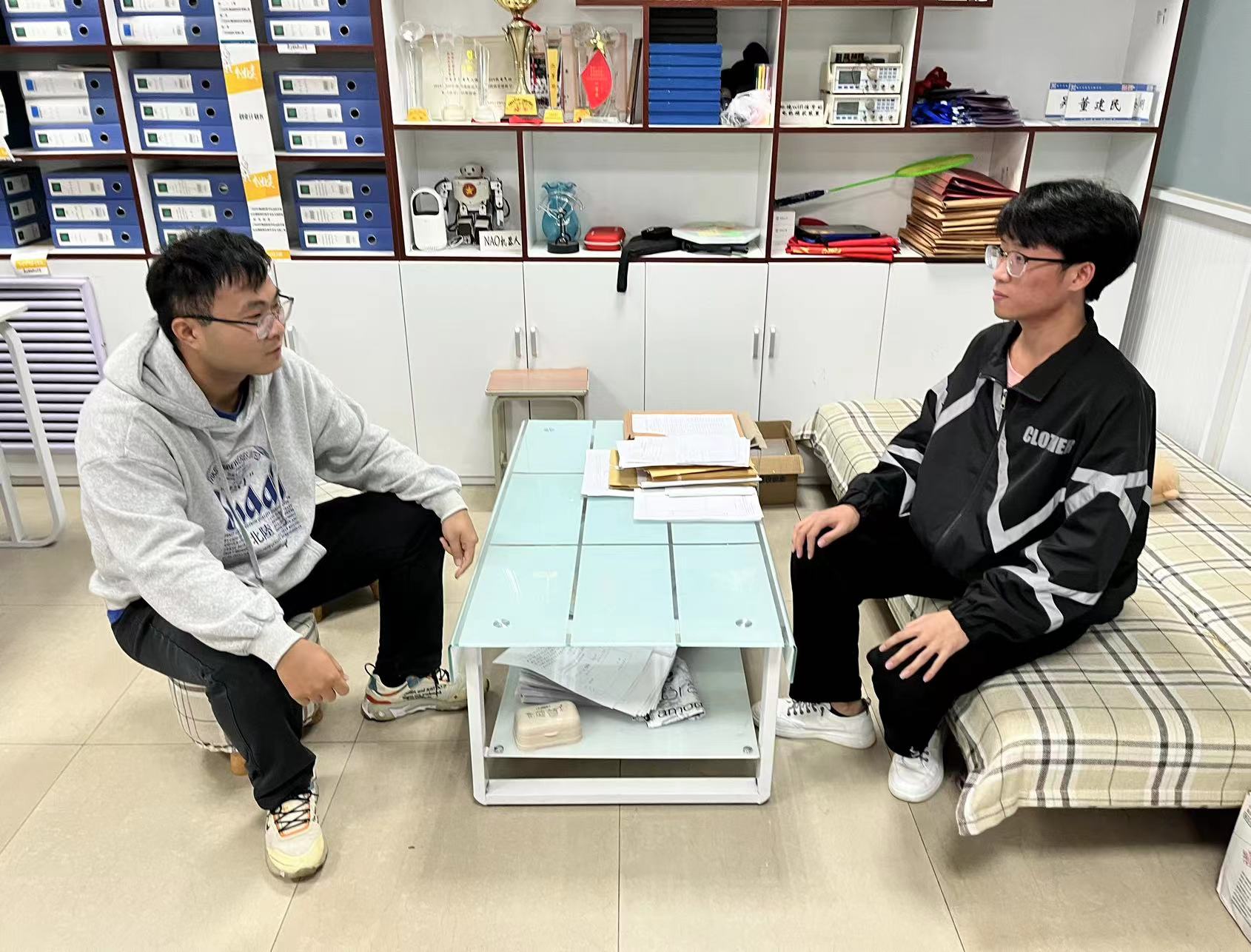 辅导员们迈开腿、沉下身,连续不断开展宿舍走访,与同学们促膝恳谈。“要配合学校防疫工作,出门要戴好口罩,不点外卖、不翻墙,不和外面人员接触。”电子与电气工程学院辅导员付康康主动在走访宿舍时告诉学生,“有什么困难随时都可以找学院老师沟通交流,我们一定尽全力去解决。”