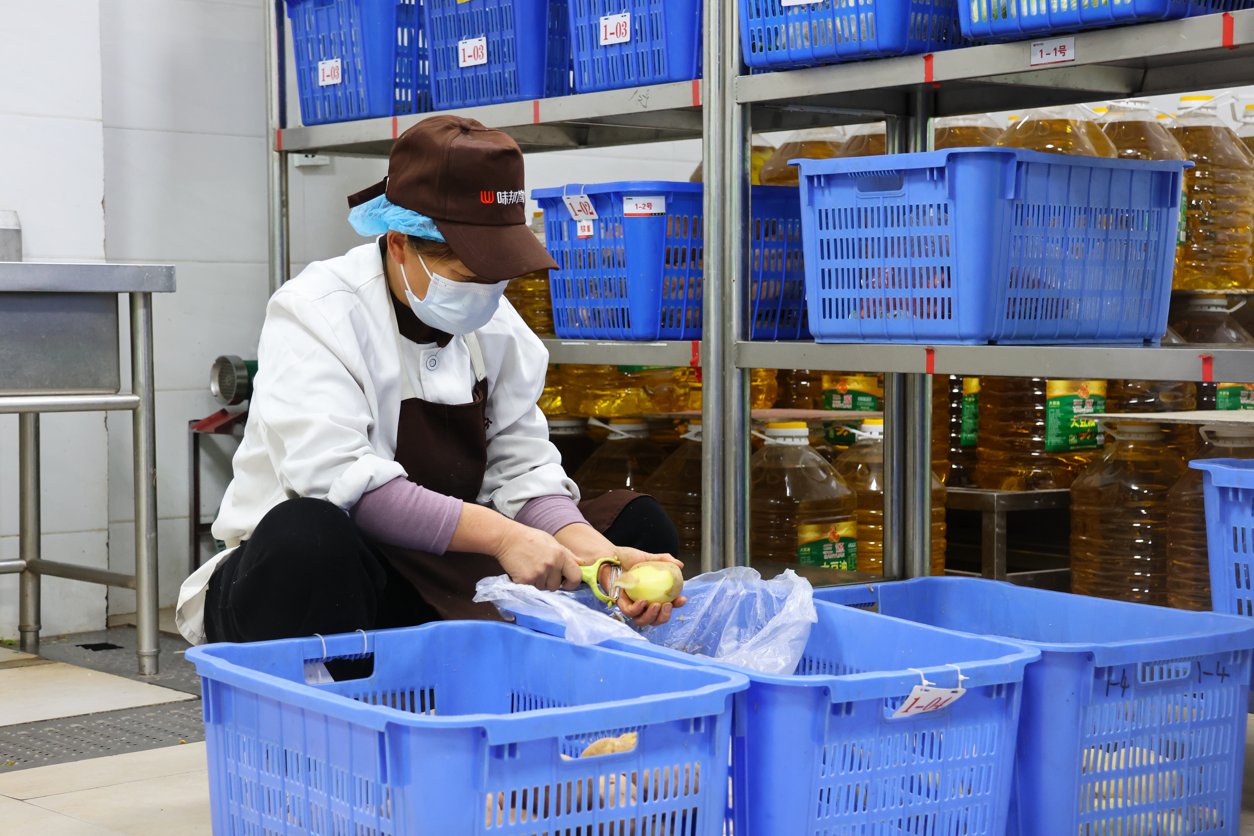 “封闭管理期间,学校餐厅主食的日均消耗量18-20吨,肉消耗量4.5吨左右、食用油2吨左右、蔬菜消耗13.5吨左右。”后勤管理处副处长李欣欣表示,餐饮服务中心每天需供应11万余份餐饭,才能满足学校一日三餐的基本需求。