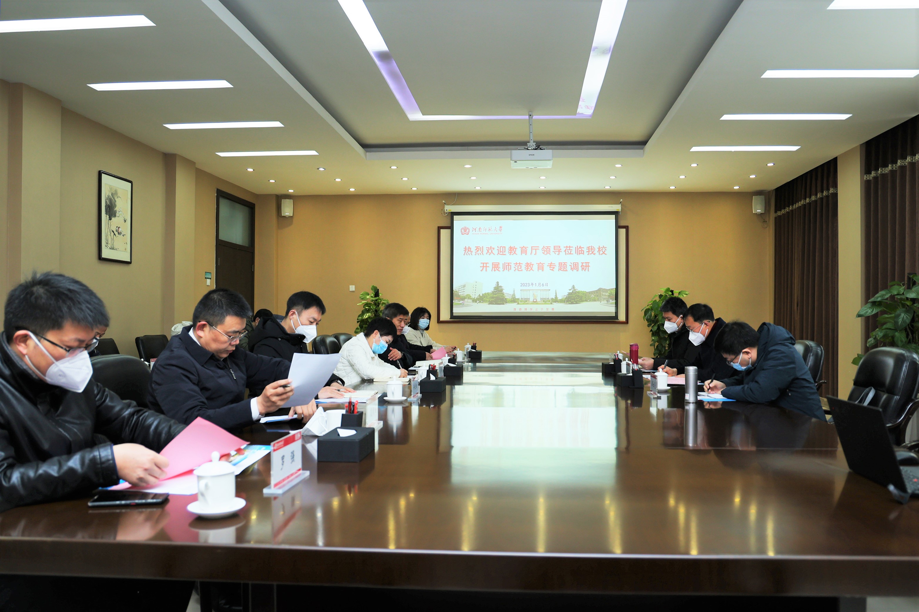 宋晔代表学校,对调研组一行新年伊始到访师大指导工作表示崇高敬意和衷心感谢,向调研组简要介绍了我校的基本情况和教师教育整体实施情况。宋晔指出,我校始终坚持“精育良才,教育报国”的初心使命,高擎教师教育特色,夯实教师教育本色,厚植教师教育底色,彰显教师教育亮色,加强教师教育供给侧改革,重塑体制机制,以师范生成长成才为中心点、以赋予师范生自主选择权为突破点、以自主培养质量为监测点、以高素质专业化“豫派良师”造就为落脚点,立足新乡,辐射中原,持续为区域基础教育改革发展贡献师大智慧和师大力量。教务处、研究生院、教育学部负责人分别就本科师范生培养、教育硕士与“硕师计划”培养、教师教育等有关工作做了详细汇报。
