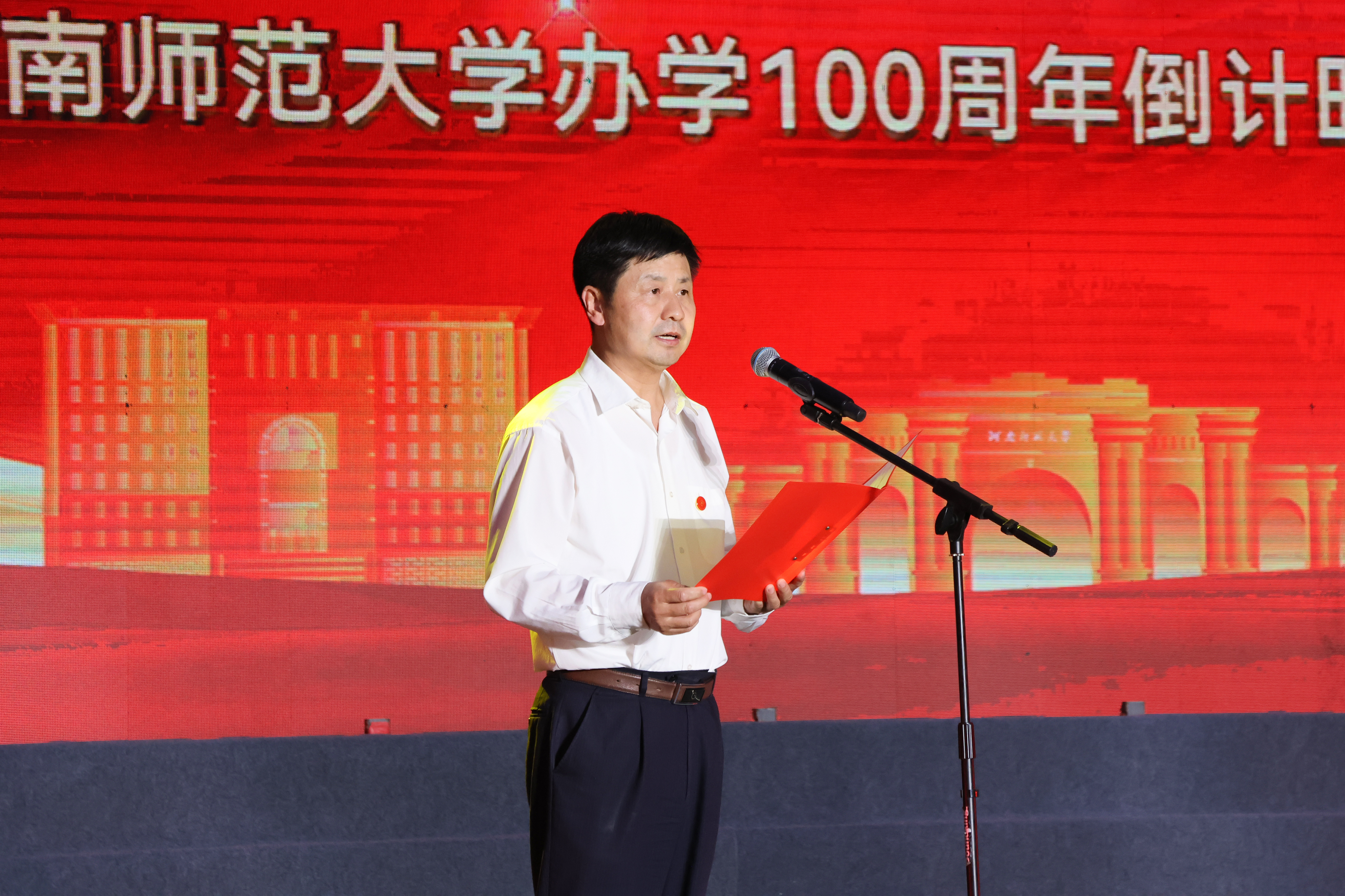 校党委书记、校长王宗敏致辞,他代表师大全体师生向始终关心支持学校发展的海内外校友致以崇高的敬意和诚挚的问候。他表示,师大的每一步发展和每一份成就,都凝结着全体师大人的心血和智慧。全校师生正以时不我待、只争朝夕的精神投入到各项工作中,全面打造教书育人、办学治校、干事创业、服务发展的良好局面。他强调,建设高水平大学,实现“双一流”梦想,要靠社会各界鼎力支持和全体师生共同努力,特别要靠广大校友携手共创,校友永远是师大事业发展最宝贵的财富、最可信赖的力量。100天后的9月23日,学校将迎来百年华诞,开启师大第二个百年发展新征程。诚邀广大校友届时相聚母校,见证百年师大的重要历史时刻,共叙师生情谊、共享母校荣光,共创师大更加美好的未来!