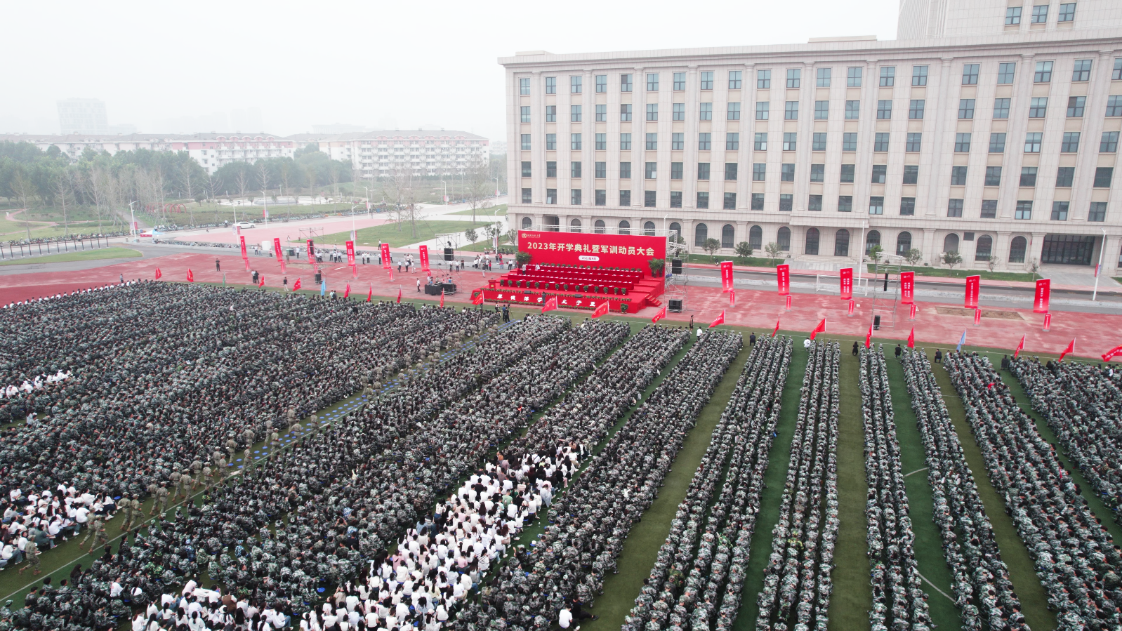 云天收夏色,木叶动秋声。四时俱可喜,最好新秋时。9月11日上午,我校2023年开学典礼暨军训动员大会在东校区田径运动场隆重举行,校领导王宗敏、张尚字、李雪山、聂国兴、王玉良、杨亚东、秦法跃出席。中国人民解放军32150部队首长及全体帮训教官,牧野区人武部领导,开学典礼暨军训工作领导小组成员单位、各学院(部)及书院负责人,杰出校友代表、教师代表、2023级全体新生及辅导员共同观礼。开学典礼暨军训动员大会由校党委副书记、工会主席马治军主持。