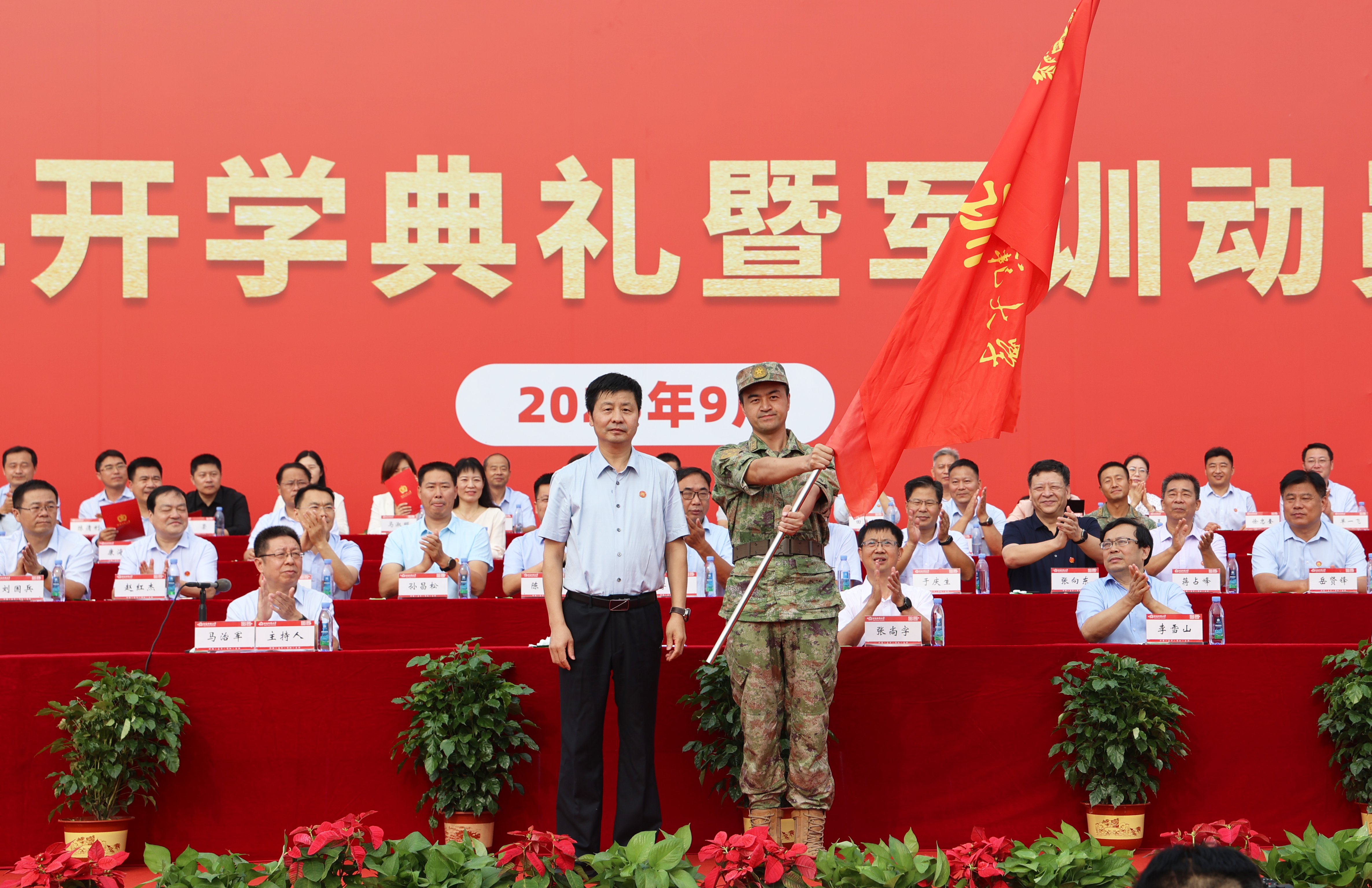“人生万事需自为,跬步江山即寥廓”。在气势磅礴的分列式进行曲中,党委书记、校长王宗敏为军训旅授旗。