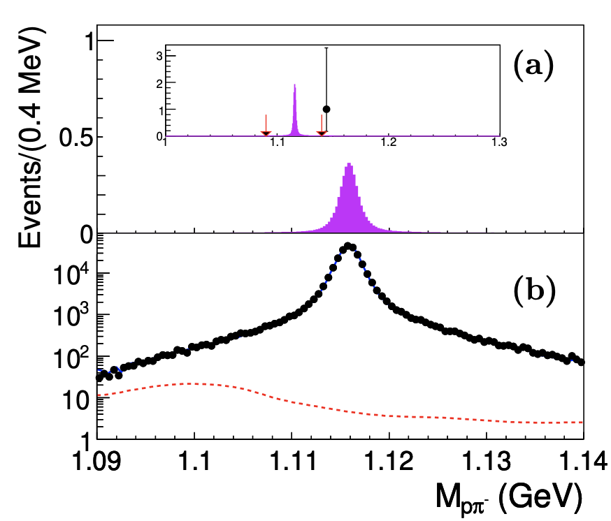末态定义为为“错误符号”,下图展示了它们的分布。结果显示,正确符号分布的本底极低、信号非常干净,而错误符号分布的信号区内没有观测到任何事例,这表明没有看到振荡现象。基于此分布,综合考虑本底分析、探测效率和系统误差等信息后,我们测得世界上首个