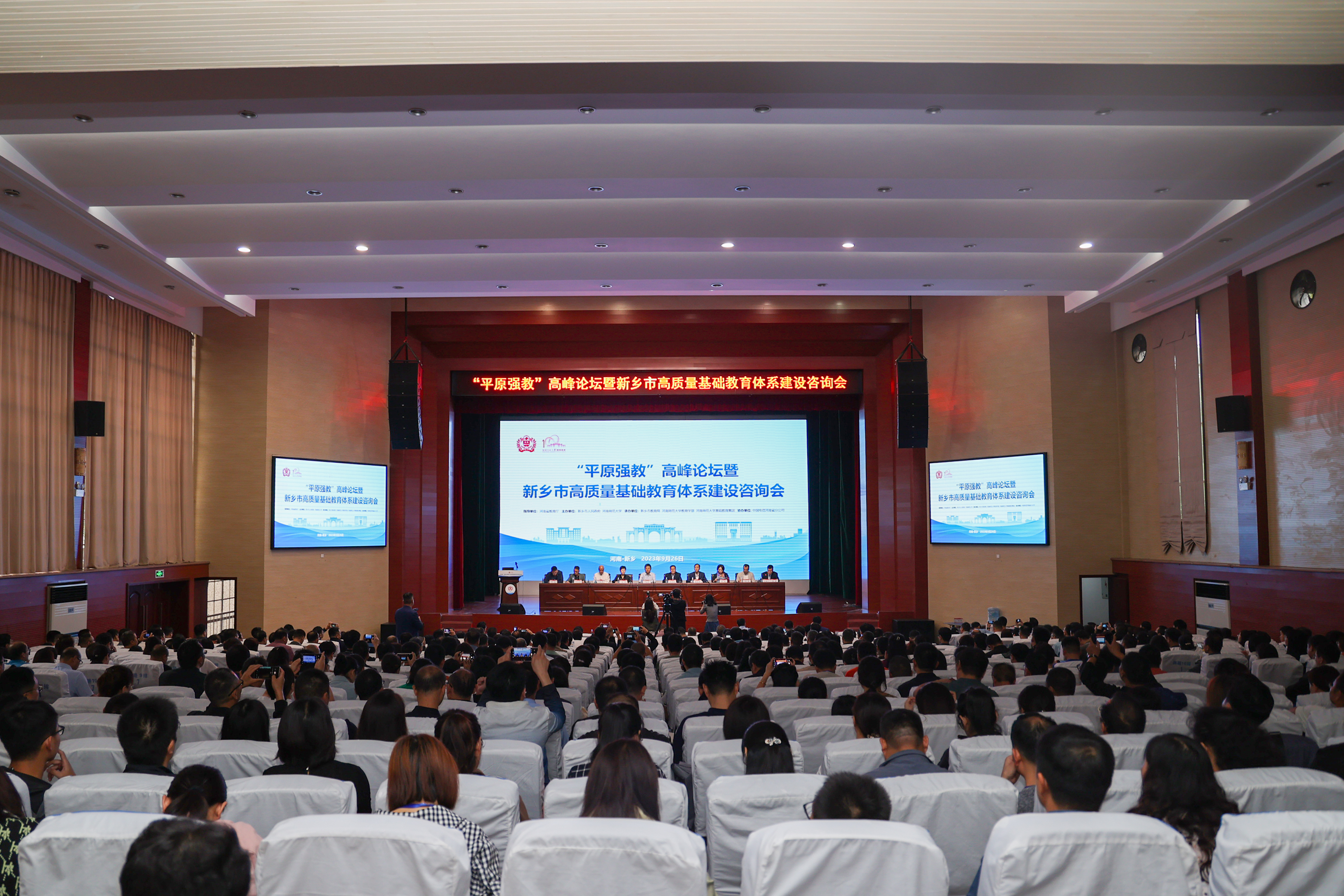 9月26日,值我校办学100周年之际,“平原强教”高峰论坛暨新乡市高质量基础教育体系建设咨询会在我校召开。教育部教材局一级巡视员申继亮,河南省教育厅督导办主任、二级巡视员王明忠,新乡市政协副主席、我校副校长宋晔,新乡市教育局党组书记、局长曹祖臣等领导出席会议并讲话。开幕式由教育学部党委书记陈勇主持。