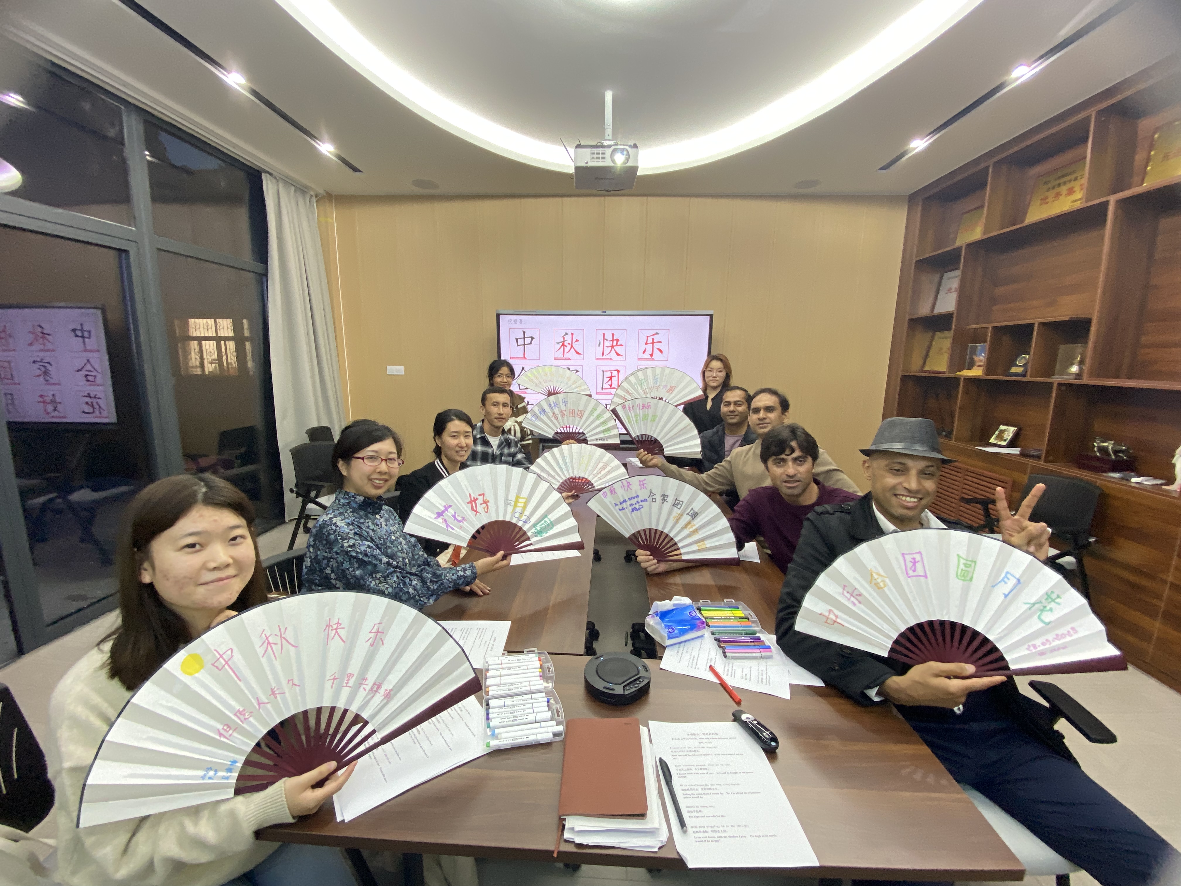 9月28日下午,“月映牧野 情满中秋”主题活动在我校国际处会议室和巴基斯坦萨戈达大学孔子学院同步举行,国际合作与交流处处长赵扬、孔子学院中方院长陈运香、萨戈达大学孔子学院外方院长法扎尔﹒乌尔﹒拉赫曼、孔子学院学生、在华外籍教师、博士后和留学生等参加活动。陈运香以“中秋节的文化内涵”为题向中外师生作专题讲座,从名称、起源、神话传说、习俗、诗词等方面介绍了中秋节的发展脉络、文化蕴含以及其意义和价值。讲座形象生动,图文并茂,深入浅出,加深了大家对中秋节传统文化的理解和认识。随后,中外师生在中秋赏乐会、诗词吟诵、中秋寄语、画扇制作、中秋美食DIY等活动中亲身体验和感受中秋节日的快乐氛围,感悟中华传统节日的魅力。