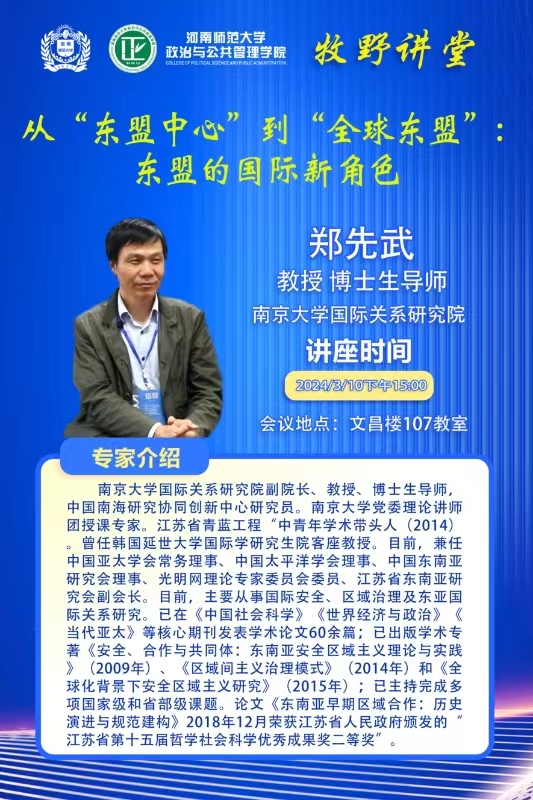 南京大学郑先武教授将应邀做客牧野讲堂•博雅论坛