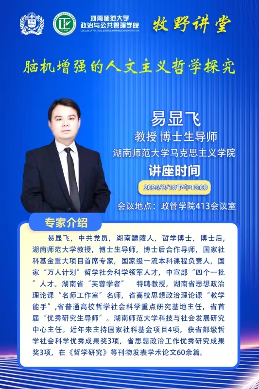 湖南师范大学易显飞教授将应邀做客牧野讲堂•博雅论坛
