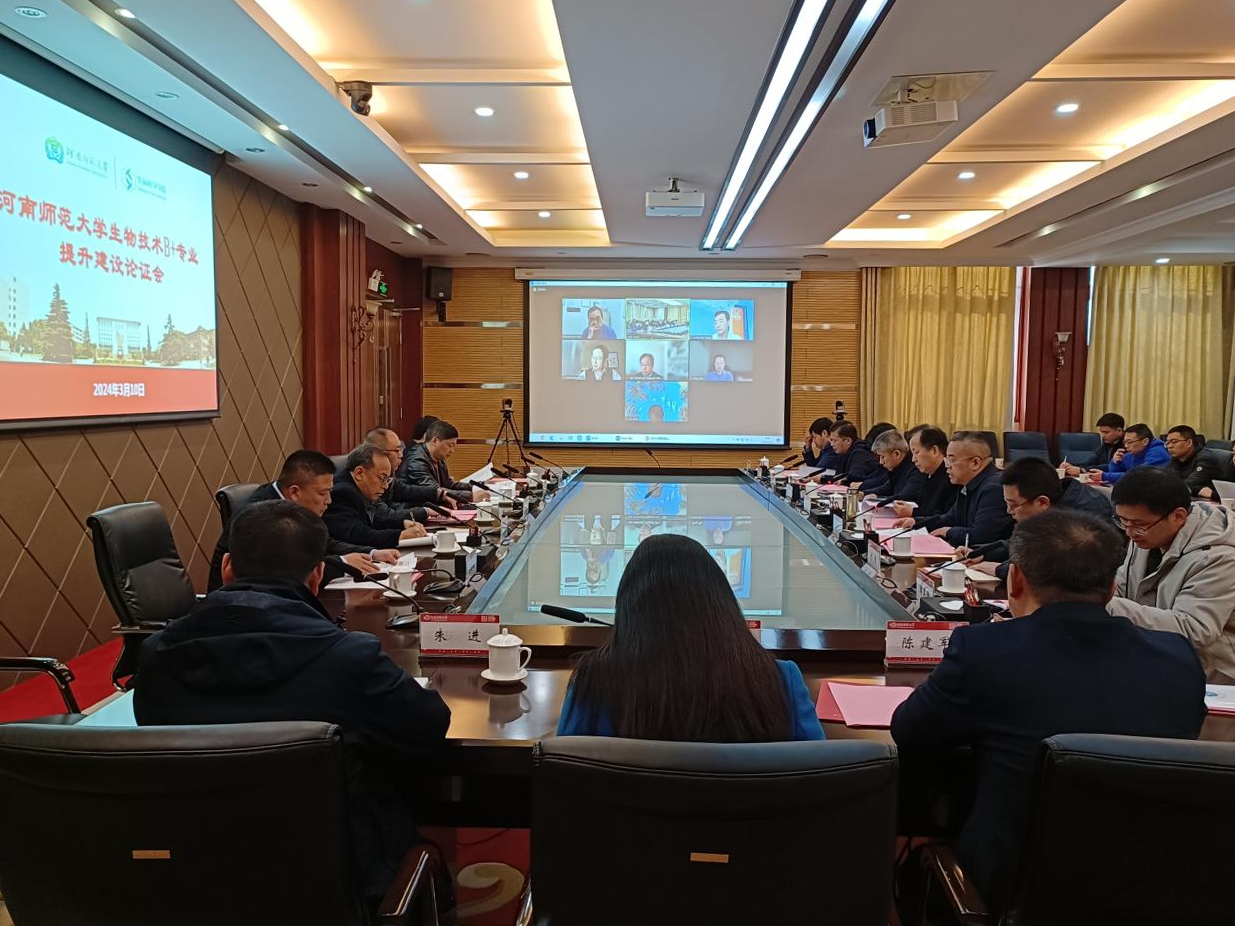为全面落实《河南省人民政府办公厅关于加快一流专业建设提高人才培养质量的指导意见》文件精神,加快推进我校一流本科专业建设,科学规范使用省拨专业建设经费,全面提高人才自主培养质量。3月10日上午,我校通过线上线下相结合的方式在勤政楼第三会议室召开生物技术B+专业建设方案论证会,来自哈佛大学、耶鲁大学、乔治亚州立大学、密苏里大学、芝加哥洛约拉大学、日本名古屋大学医学院、亚利桑那大学及东北农业大学、华东师范大学、华南师范大学、郑州大学、河南大学等国际、国内知名高校的12位专家,河南省教育厅高等教育处处长闫治国,校党委常委、副校长聂国兴,以及专业建设相关职能部门负责人、生命科学学院相关负责人和上一轮省专业评价B-学院(部)的教学院长、专业负责人共同参会。会议由教务处处长梁存良主持。