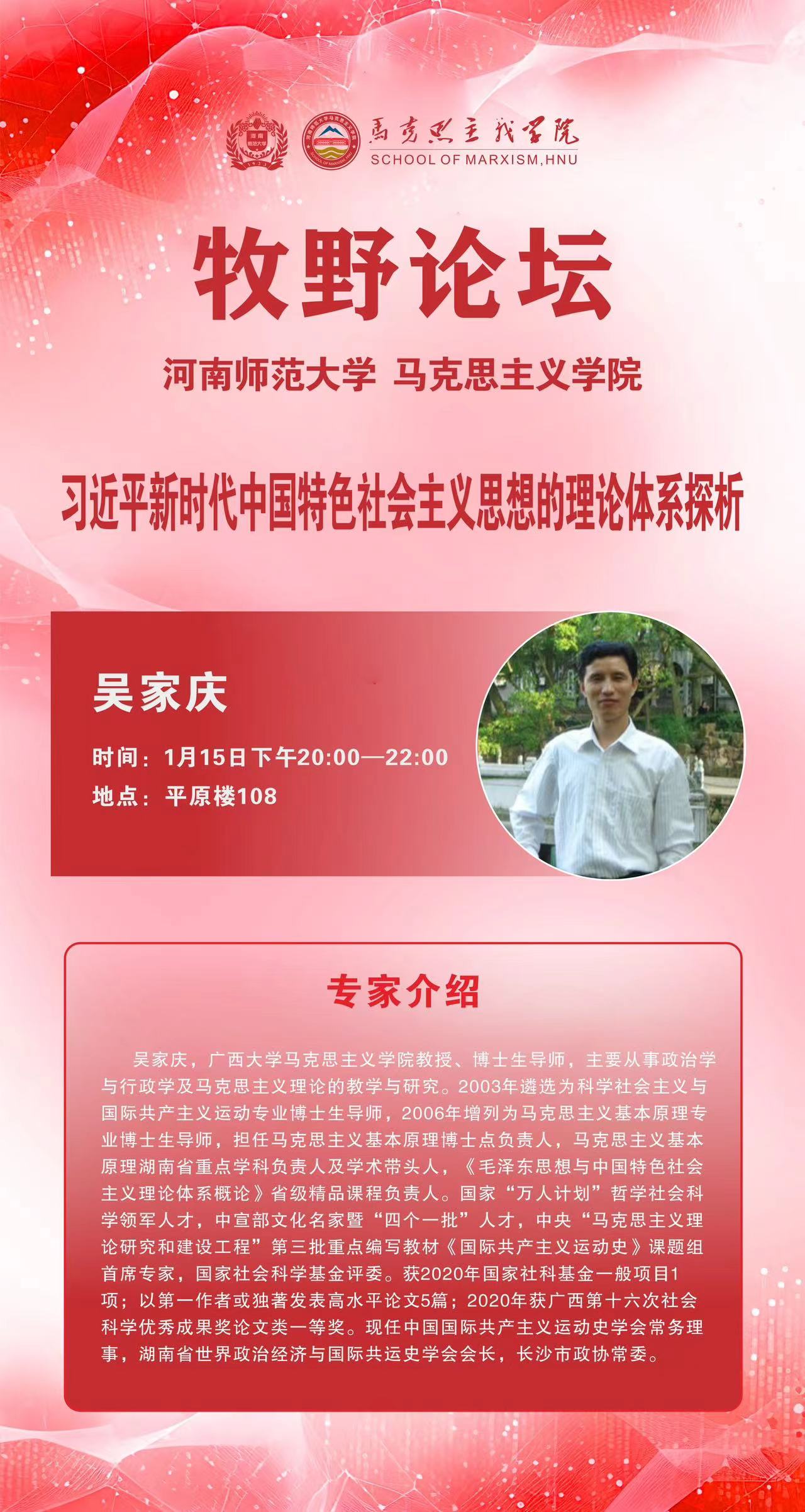 广西大学吴家庆教授将应邀做客牧野论坛