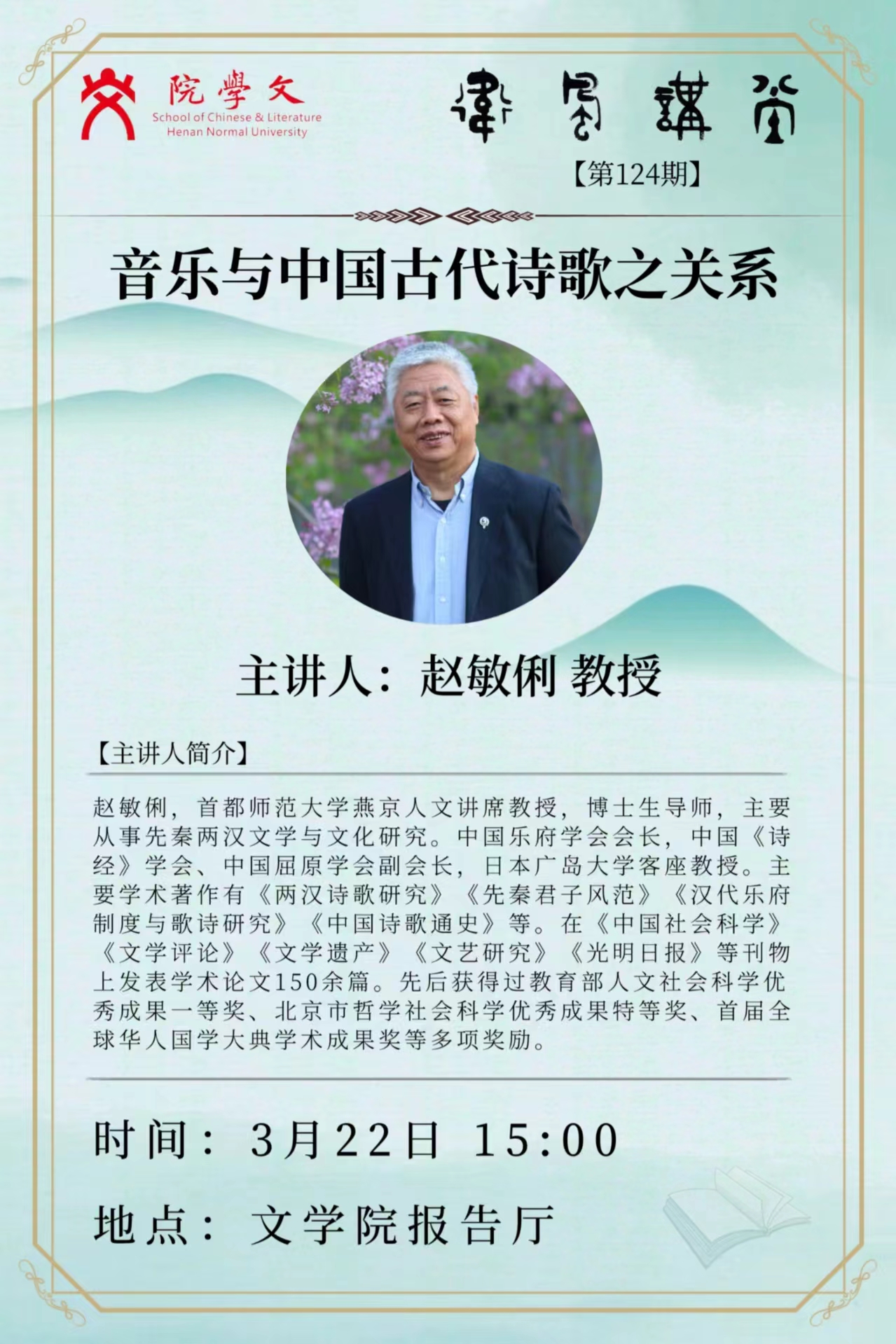 首都师范大学赵敏俐教授将应邀做客“卫风讲堂”