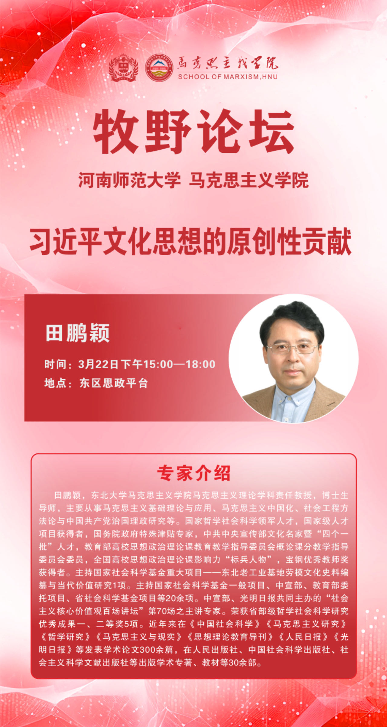 东北大学田鹏颖教授将应邀做客牧野论坛