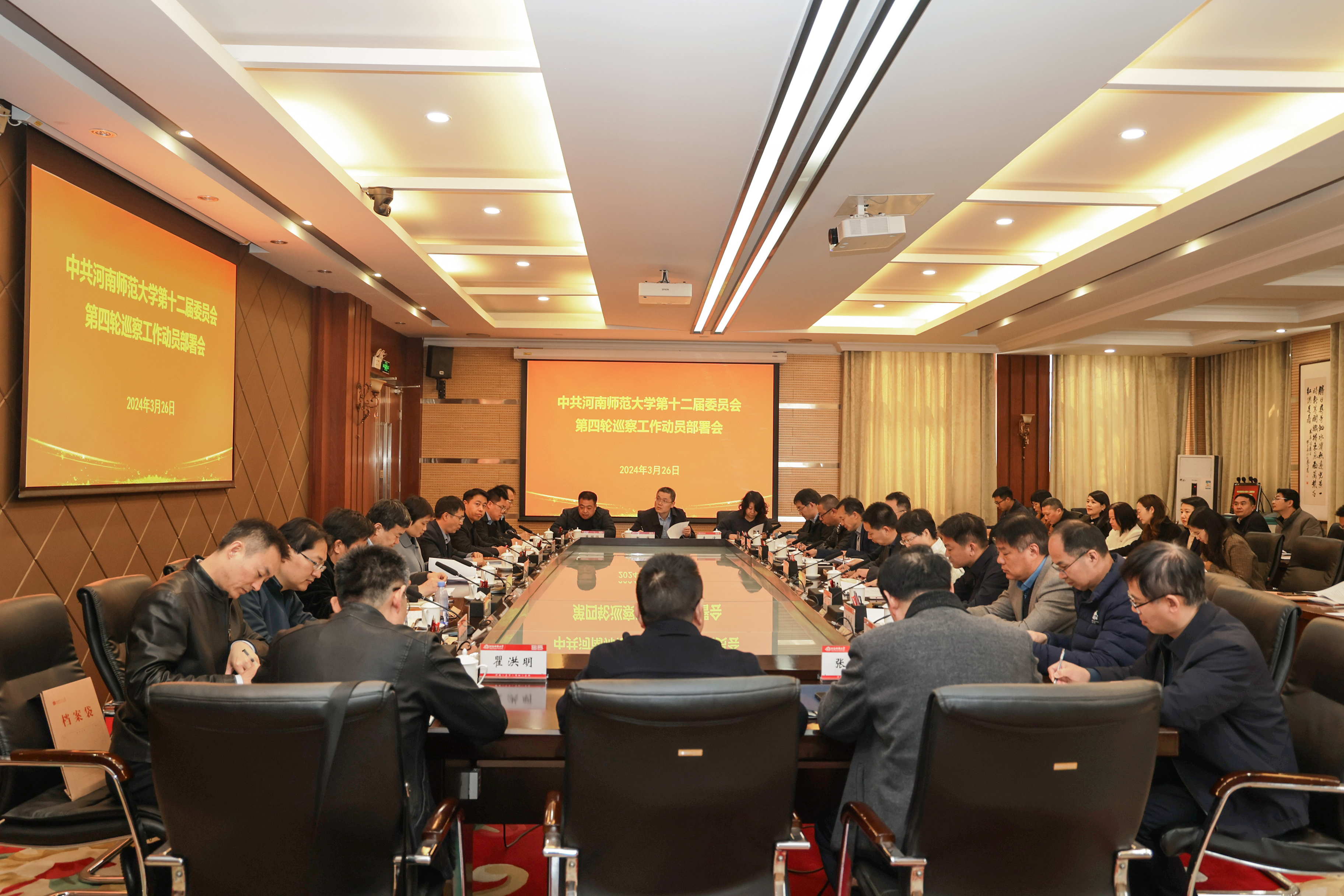 3月26日,学校第四轮巡察工作动员部署会在勤政楼第三会议室召开。校长、党委副书记冯淑霞,校党委副书记、党委巡察工作领导小组副组长张尚字出席会议,党委巡察工作领导小组成员,被巡察单位党政负责人,各巡察组相关人员以及党委巡察办工作人员参加会议。会议由张尚字主持。