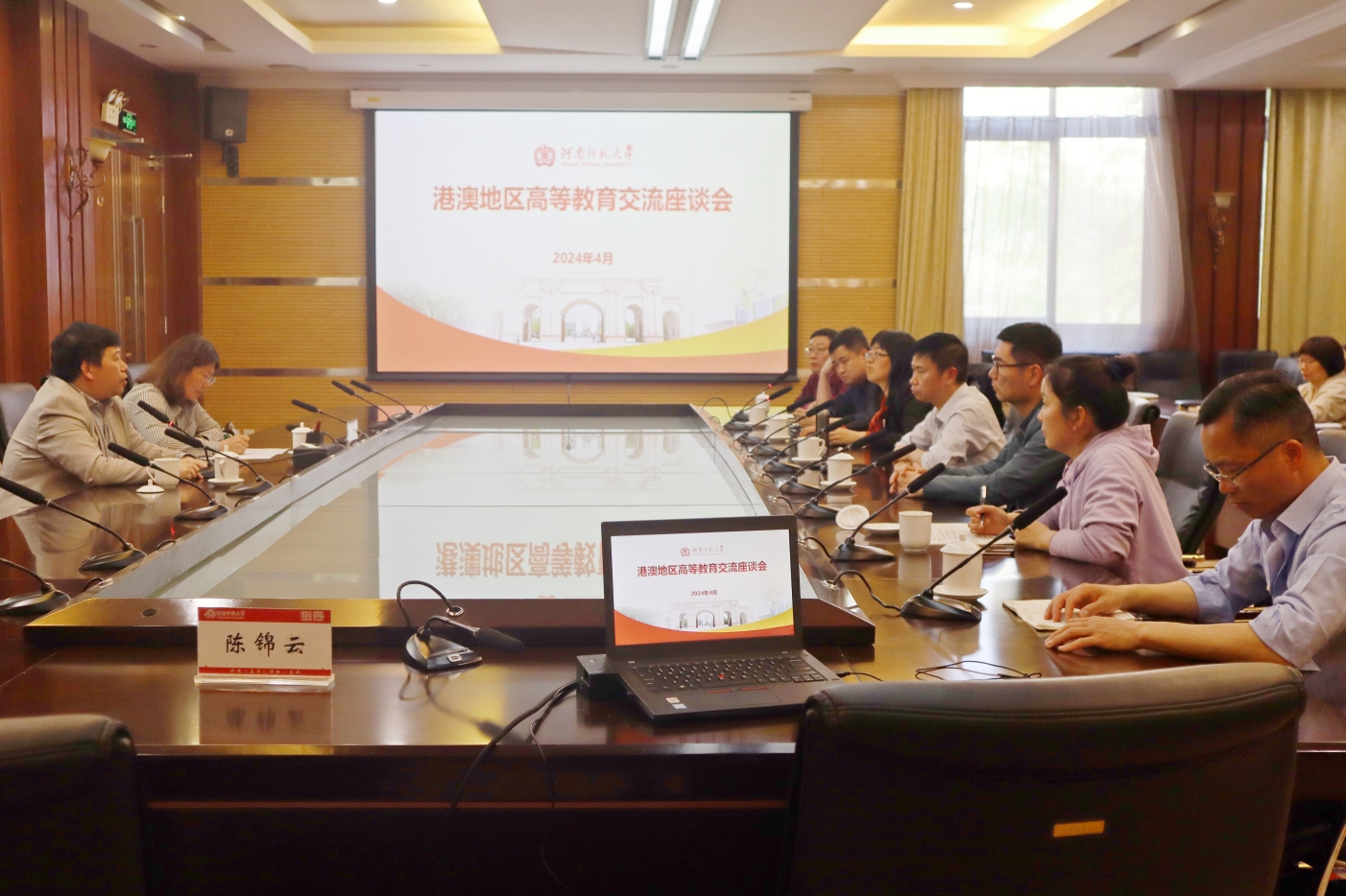 为进一步提升开放办学水平,推进我校与港澳地区高等教育交流合作,4月12日下午,学校港澳地区高等教育交流座谈会在勤政楼第三会议室举行。大湾区教育融合发展智库创始人兼主席陈锦云受邀参加座谈,相关职能部门、学院(部)负责同志和师生代表参加,座谈会由港澳台办公室主任赵扬主持。
