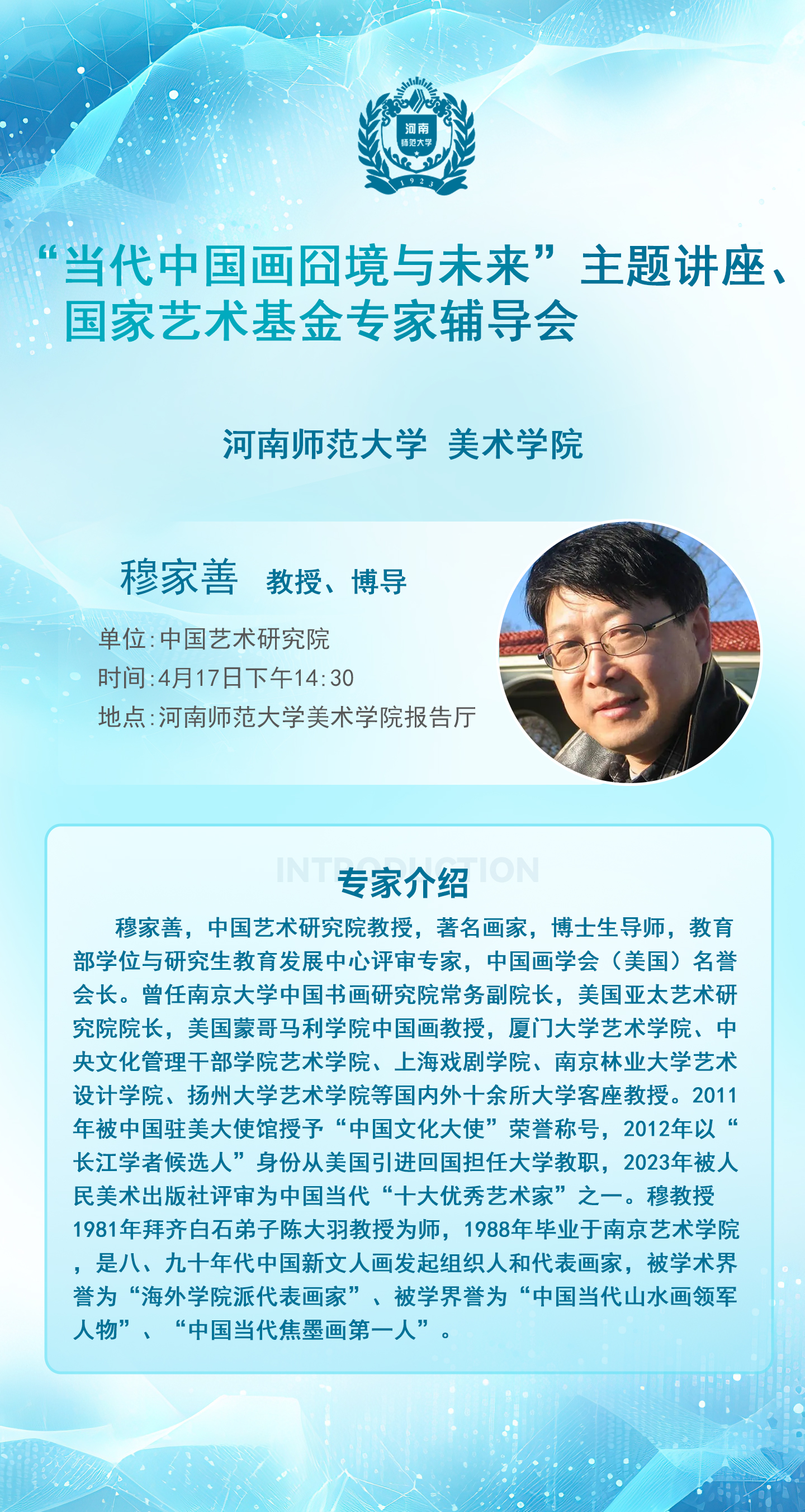 中国艺术研究院穆家善教授将应邀做客美美与共·美术学院名家大讲堂