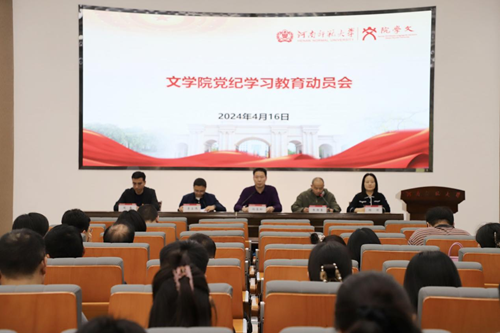 为深入学习贯彻修订后的《中国共产党纪律处分条例》,4月16日下午,文学院在崇文楼一楼报告厅召开党纪学习教育动员会。学院党委委员、全体教师党员、学生党员代表参加会议,党委副书记张颜勇主持本次会议。