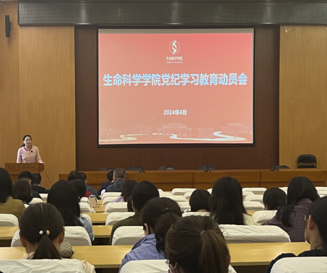 4月16日下午,生命科学学院在生物报告厅召开党纪学习教育动员会。学院全体教工参加会议,会议由院党委书记王毅主持。