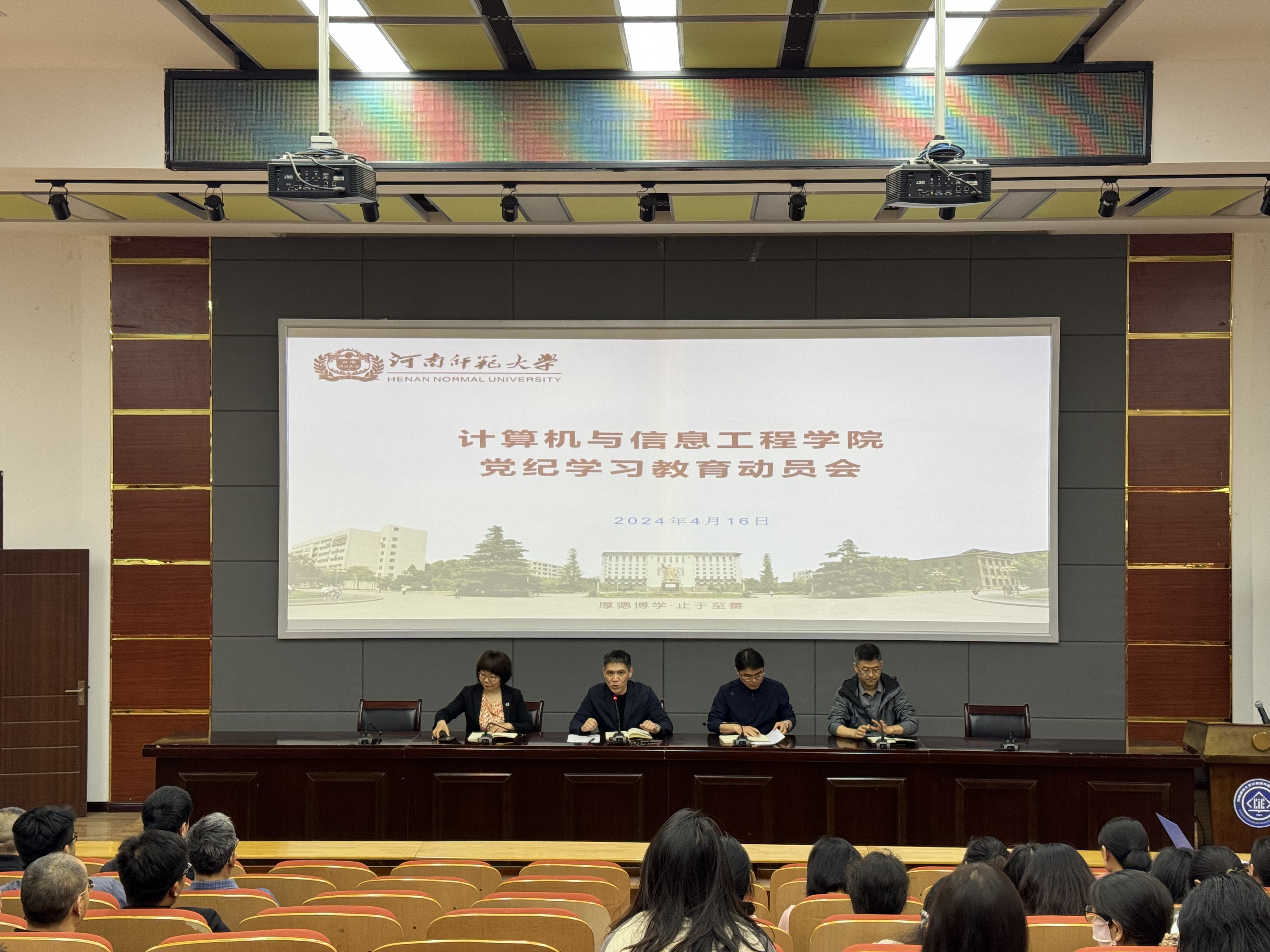 4月16日,计算机与信息工程学院党纪学习教育动员会在计算机楼217报告厅召开。学院全体教职工参加会议,会议由院党委书记瞿洪明主持。